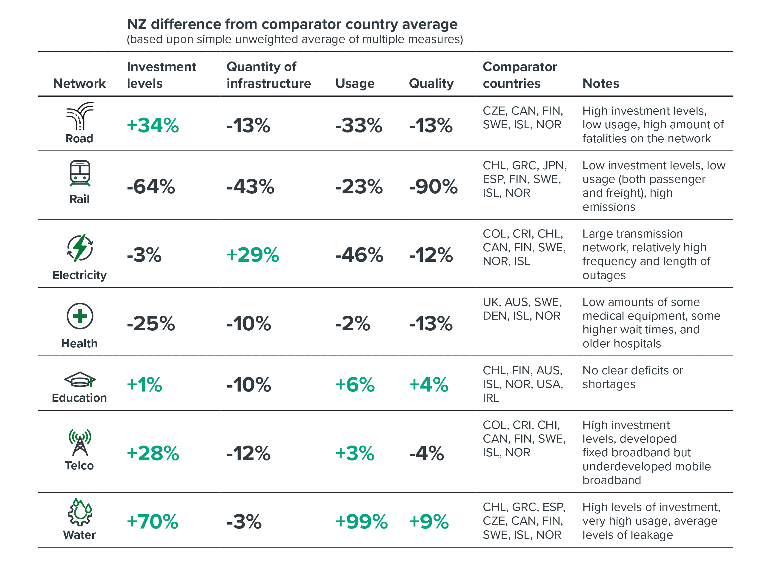 Table 2: Comparing New Zealand’s infrastructure networks against our peer countries