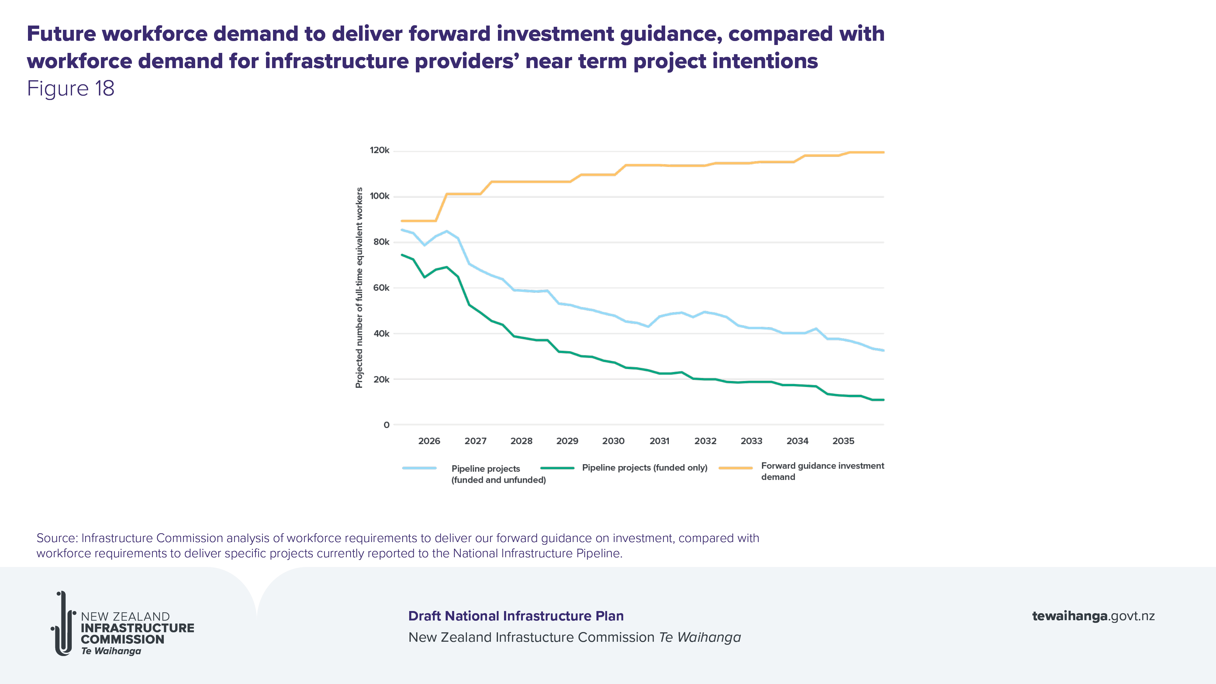 Source: Infrastructure Commission analysis of workforce requirements to deliver our forward guidance on investment, compared with workforce requirements to deliver specific projects currently reported to the National Infrastructure Pipeline.