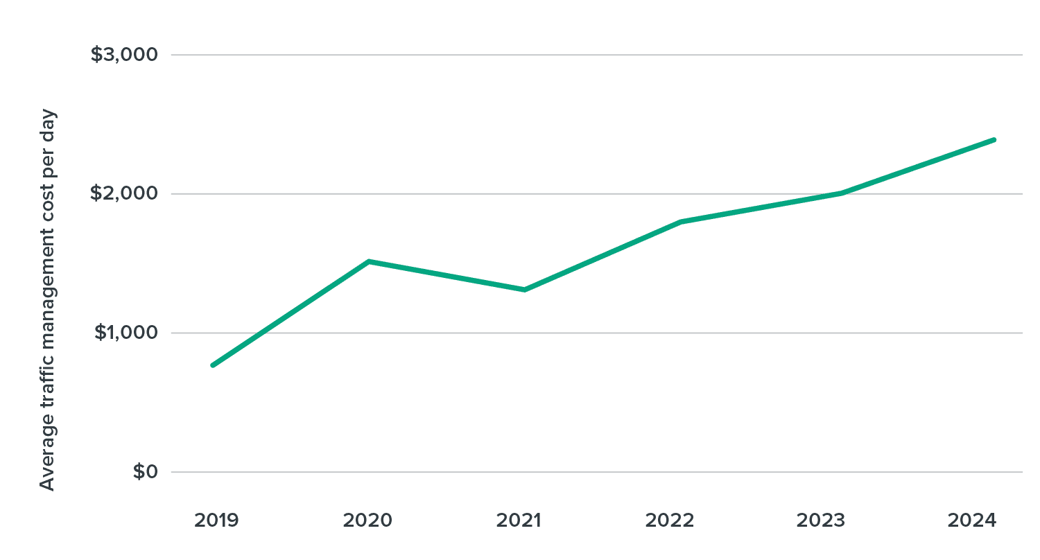 Figure 26: Average temporary traffic management cost per day, 2019 – 2024