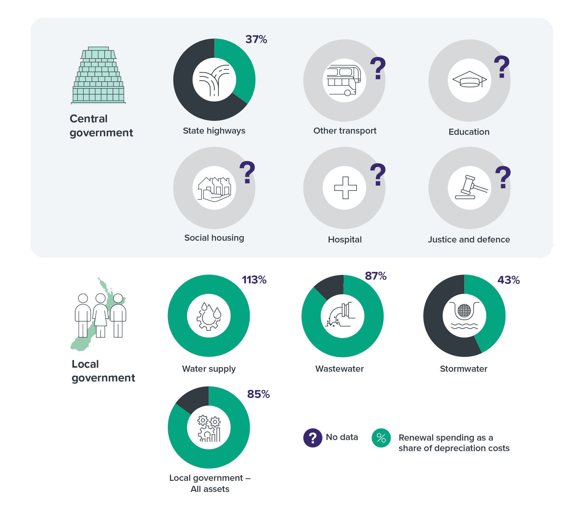 New Zealand is one of the worst high-income countries in the world at looking after its existing infrastructure. Central government agencies have consistently underfunded maintenance and renewals, resulting in visible problems like leaky hospitals and police stations, mouldy barracks, and potholes. This undermines public confidence and prevents our infrastructure networks from being able to deliver the levels of service they were built to provide. Routine maintenance is more cost-effective than costly catch-up programmes, so setting up good practices will free up resources for other needs.