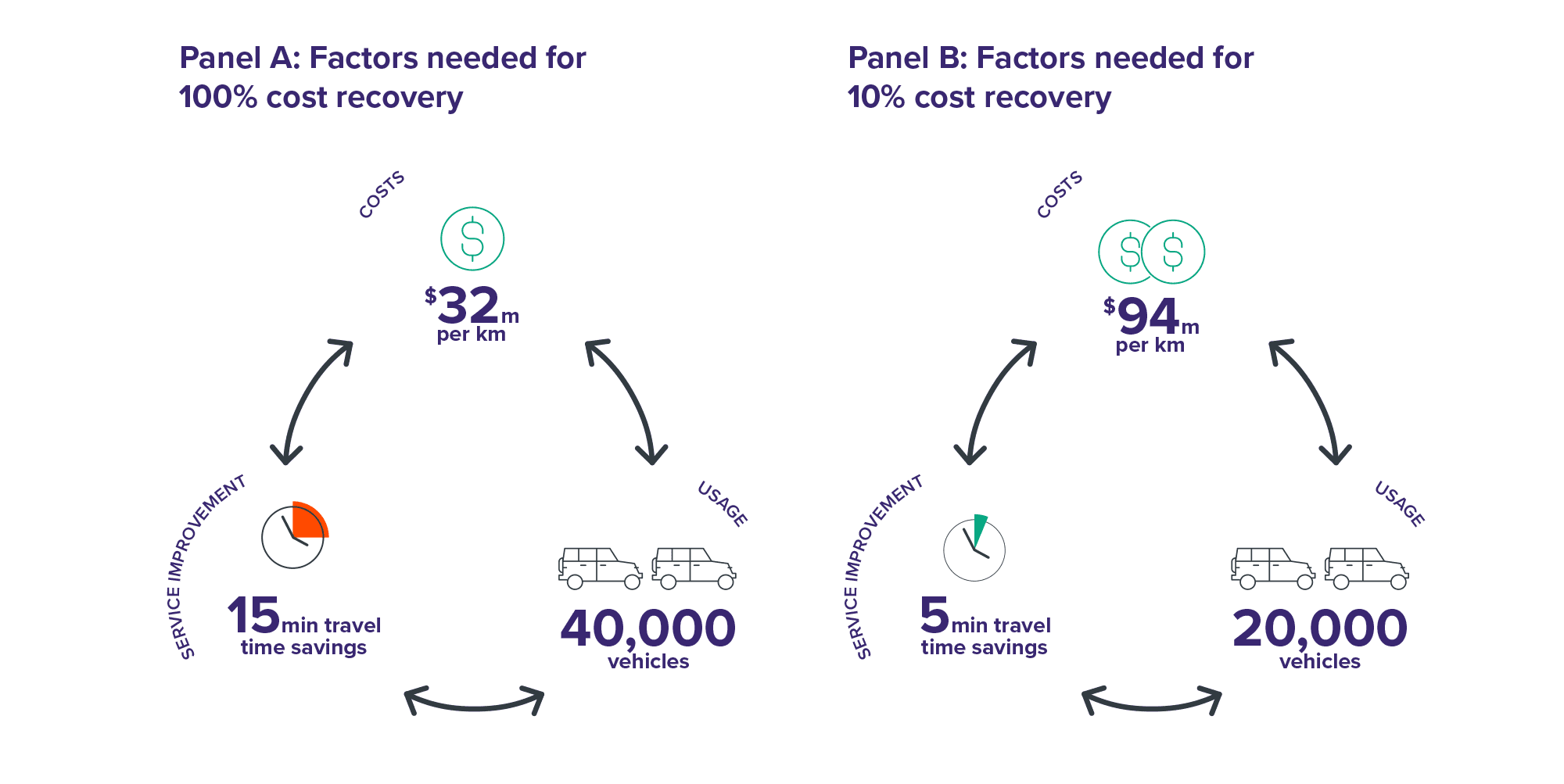 Higher-quality projects also expand funding choices. The Commission’s analysis shows that projects delivering high benefits to many users at an affordable cost are far more likely to recover a meaningful share of their costs through revenue tools like tolls (Figure 34). Only a small subset of projects can self-fund, but stronger value for money discipline improves both investment decisions and funding pathways.