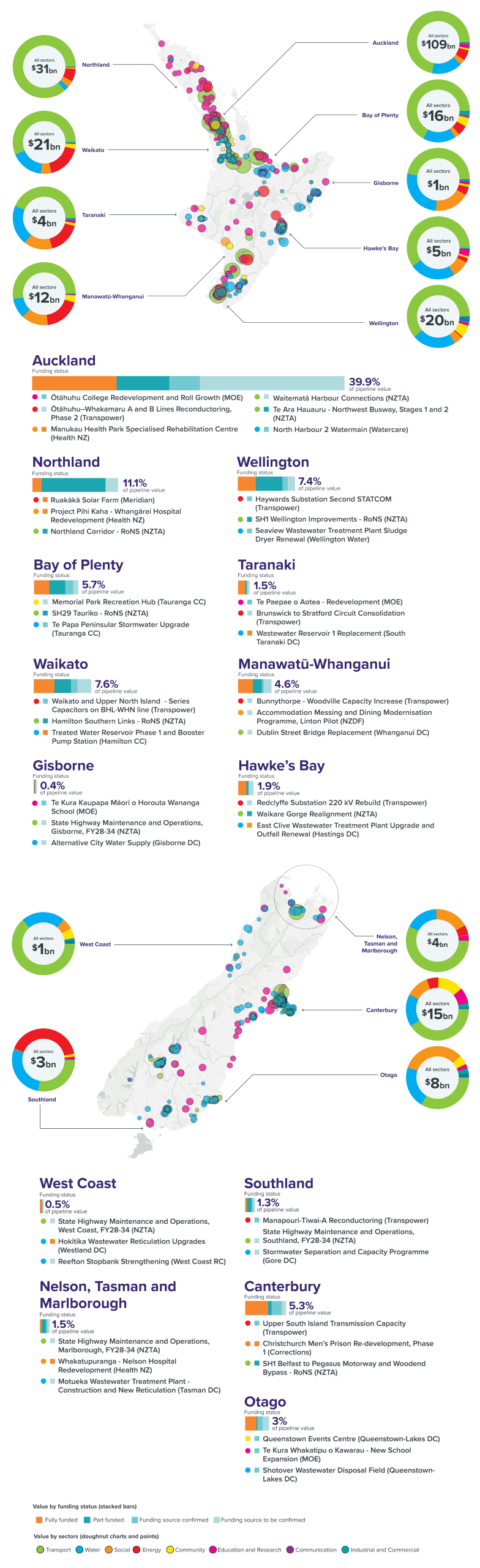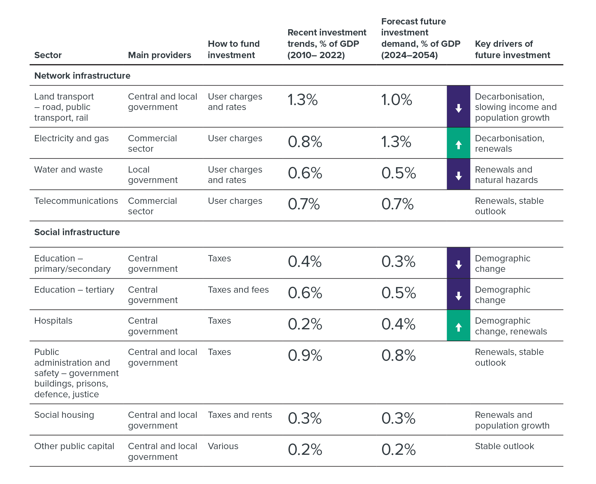 Note: The infrastructure networks highlighted in our analysis are based upon those categories and definitions of infrastructure from our 2024 Research Insights paper, ‘Build or Maintain: New Zealand’s infrastructure asset value, investment, and depreciation, 1990–2022’. Those definitions are drawn from Stats NZ data from New Zealand’s national accounts. In some cases these categories do not neatly correspond to other, more detailed infrastructure sector classifications. Source: ‘Forward Guidance for Infrastructure Investment’. New Zealand Infrastructure Commission. (2026).