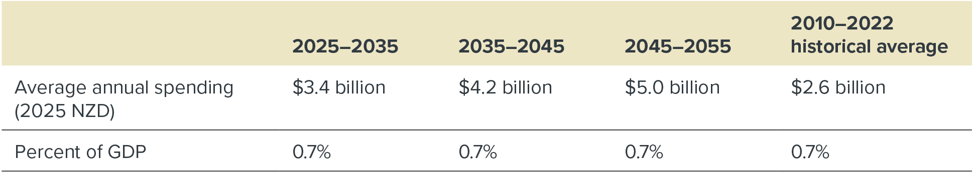 This table provides further detail on our Forward Guidance, which is summarised in Chapter 3. Further information on this analysis and the underlying modelling assumptions is provided in a supporting technical report.189 Our analysis for the telecommunication sector includes investment in all fixed assets to service the sector. This includes assets such as fibre cables and towers but also includes data processing and storage facilities. Underlying data is drawn from Stats NZ National Accounts data on asset values.