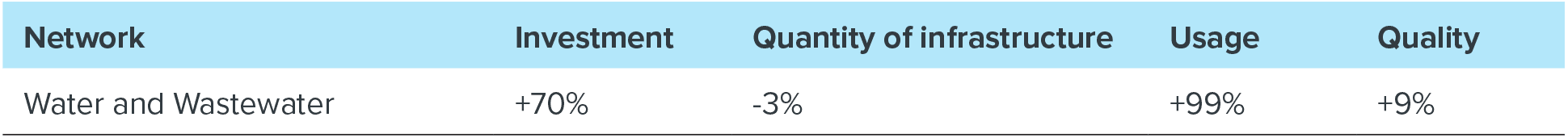 Recent investment has been driven by a combination of tighter standards for water quality and growing networks to accommodate larger populations. Tighter standards include stricter environmental discharge limits and enhanced health protections in line with World Health Organization guidance.