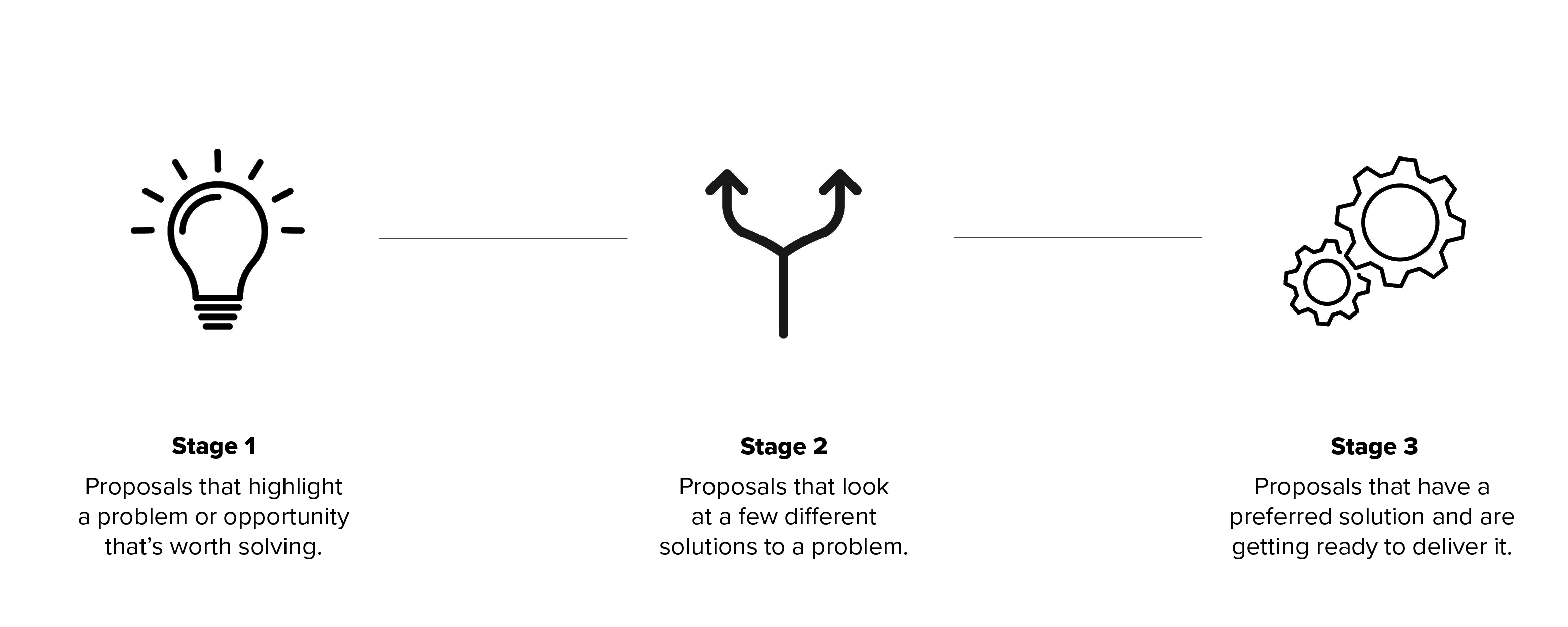 - Stage 3: Your proposal is ready for investment. You’ll have a high level of maturity in financial (e.g., costings), commercial, procurement, and governance planning.