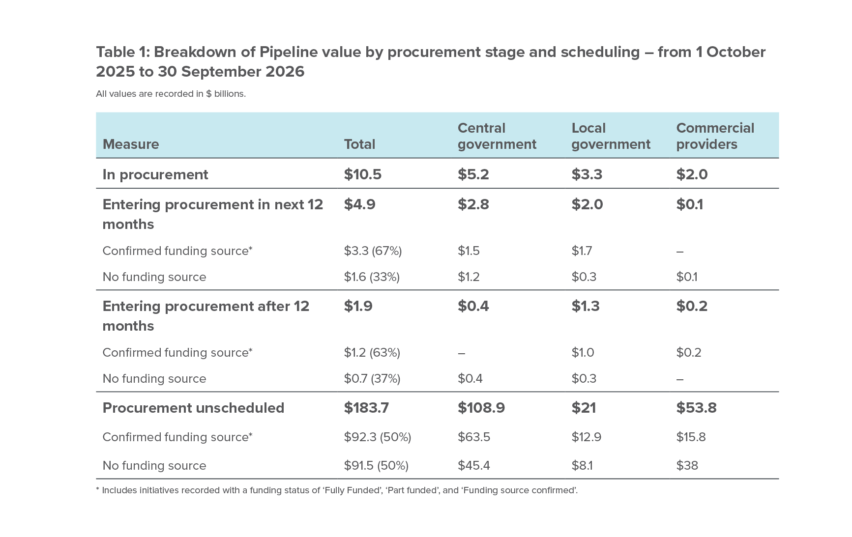 3. Projects submitted with a project status of ‘In procurement’ and projects reported to enter procurement in 12 months from 1 October 2025.