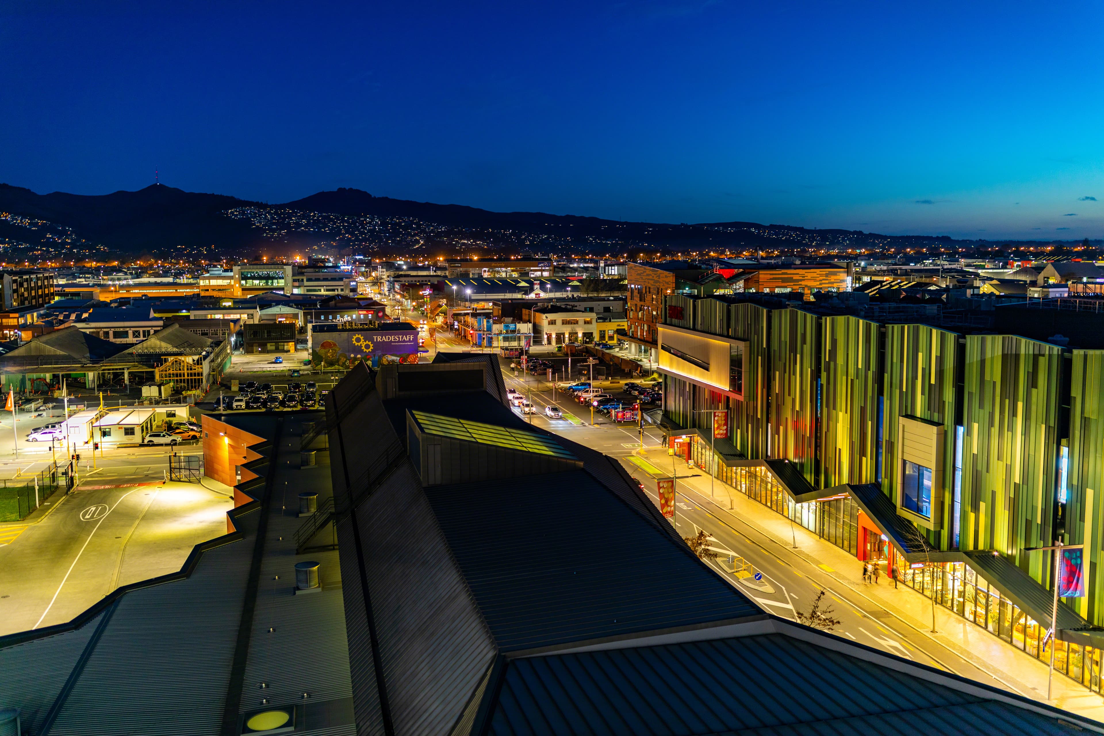 View from the Christchurch Bus Exchange toward Ao Tawhiti