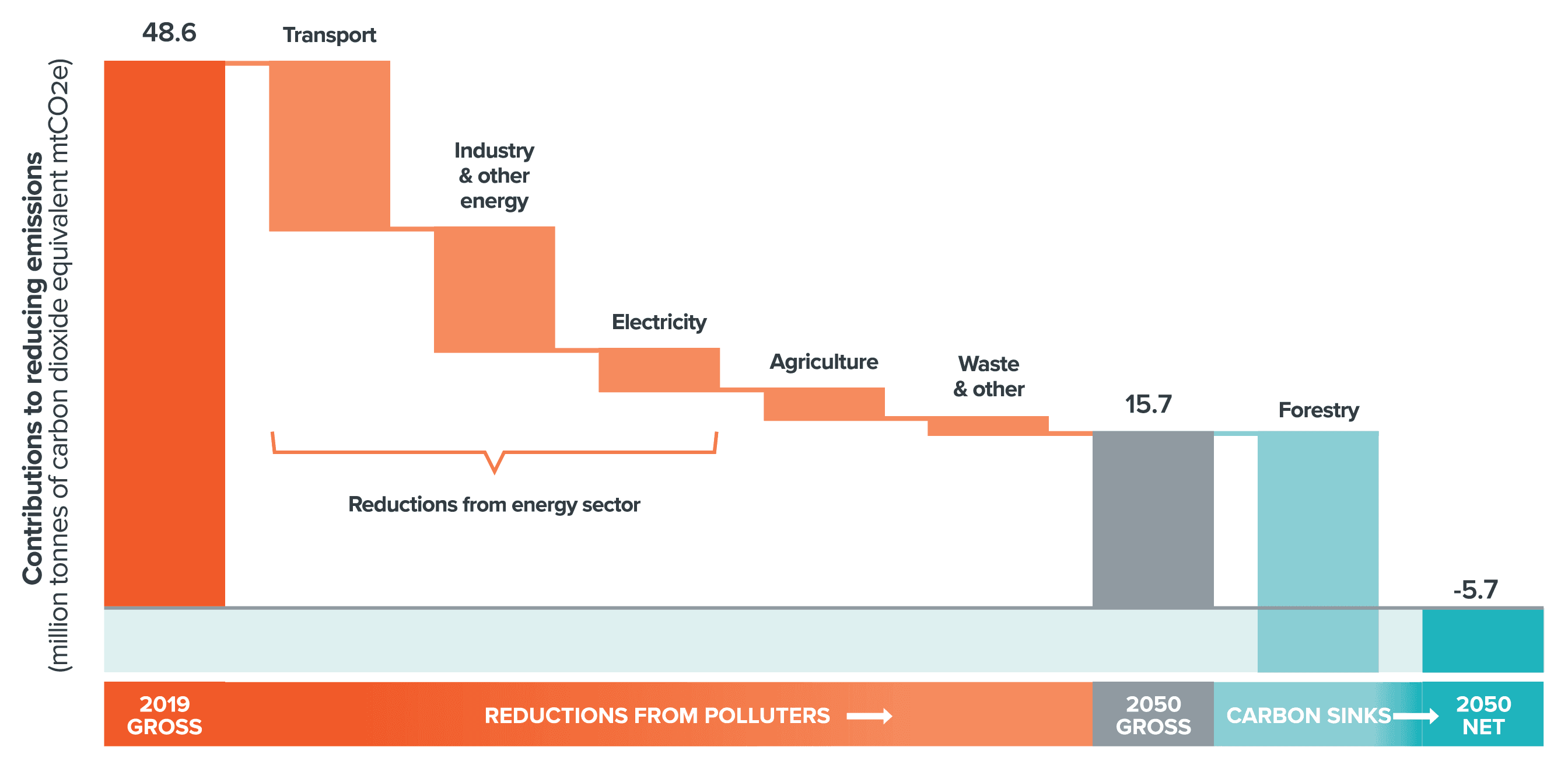 The reductions will primarily need to come from the transport, industry and forestry sectors, as shown in Figure 15.48