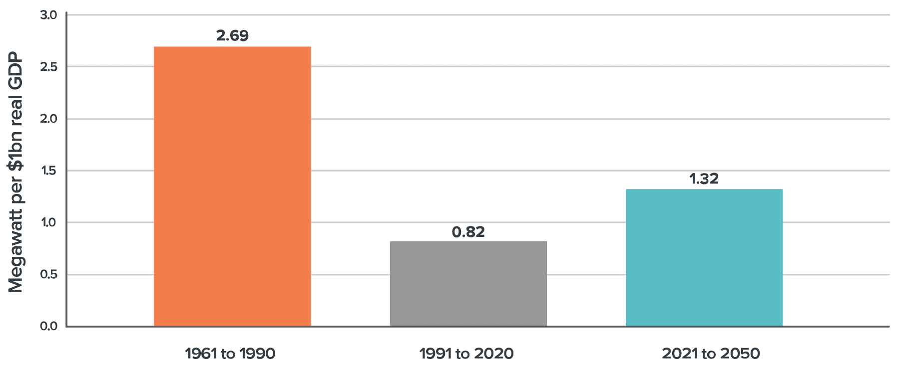 Figure 17: Historical and projected growth in electricity generation capacity, relative to GDP